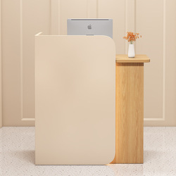 モダンなアーク型レセプションデスクナチュラルウッドカラー美容サロンストアレジ & コンサルテーションデスク
